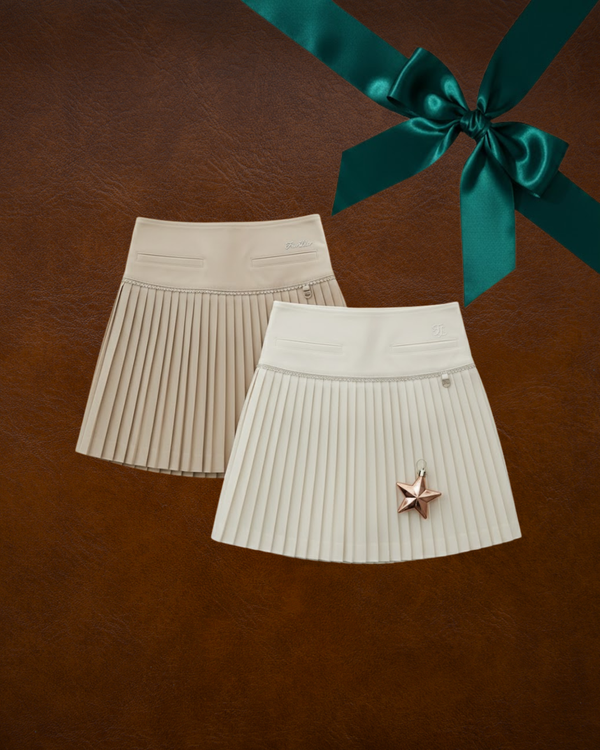 [FL Signature] Pearl & Bead Flare Pleated Skirt (Beige)