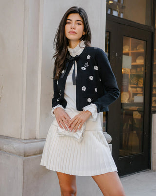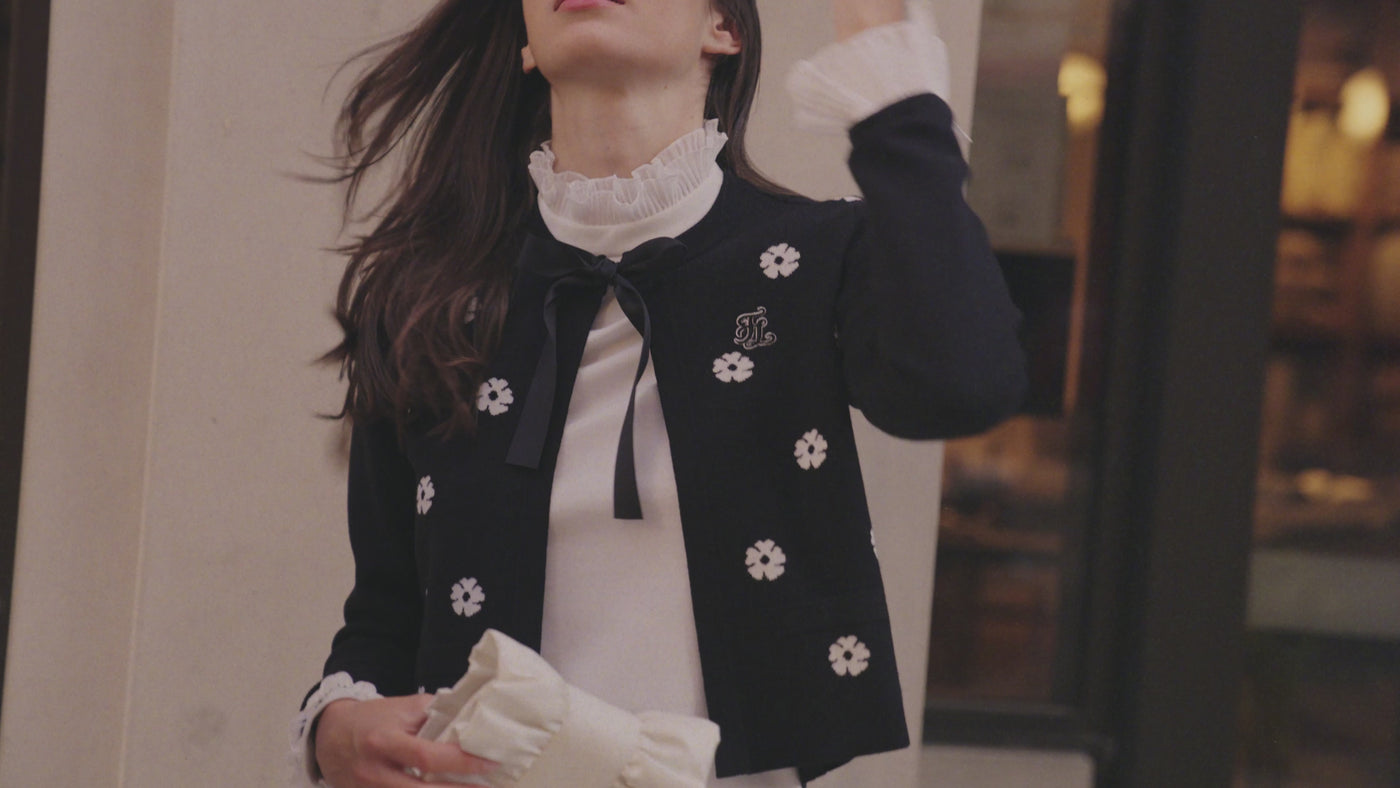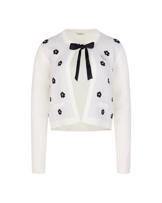 Flower Jacquard Open Ribbon Cardigan (Ivory)