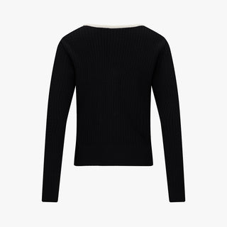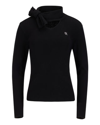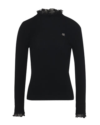 Fair Liar Double Frill High Neck Rib Knit (Black)
