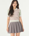 [FL Signature] Pearl & Bead Flare Pleated Skirt (Pink)