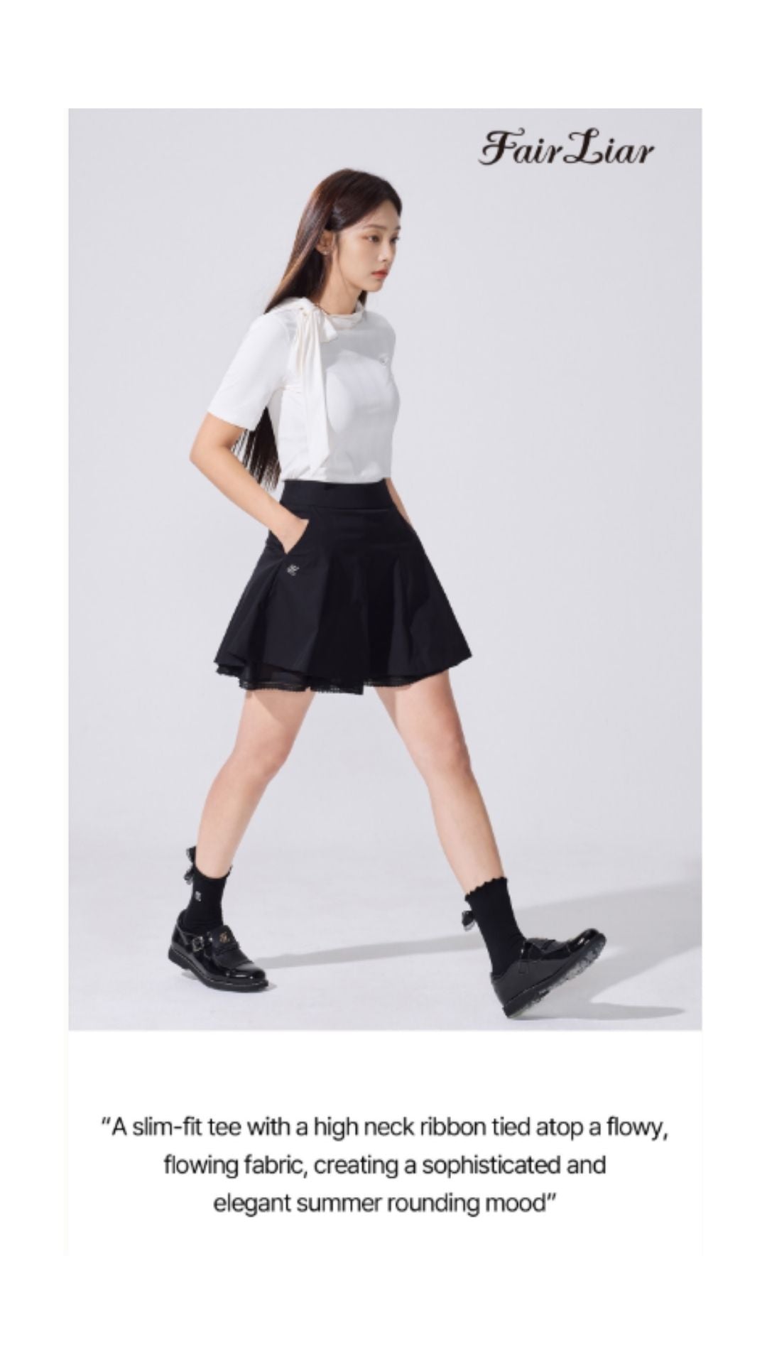 Founded in Seoul in 2017, Fair Liar is a women’s golfwear brand that blends fashion with function. Our collections bring a refined, feminine take on golf apparel — designed to perform on the course and look effortless off it. Every piece is crafted with premium materials and tested for performance standards, so you never have to compromise style for function. Learn more on our about our quality here.