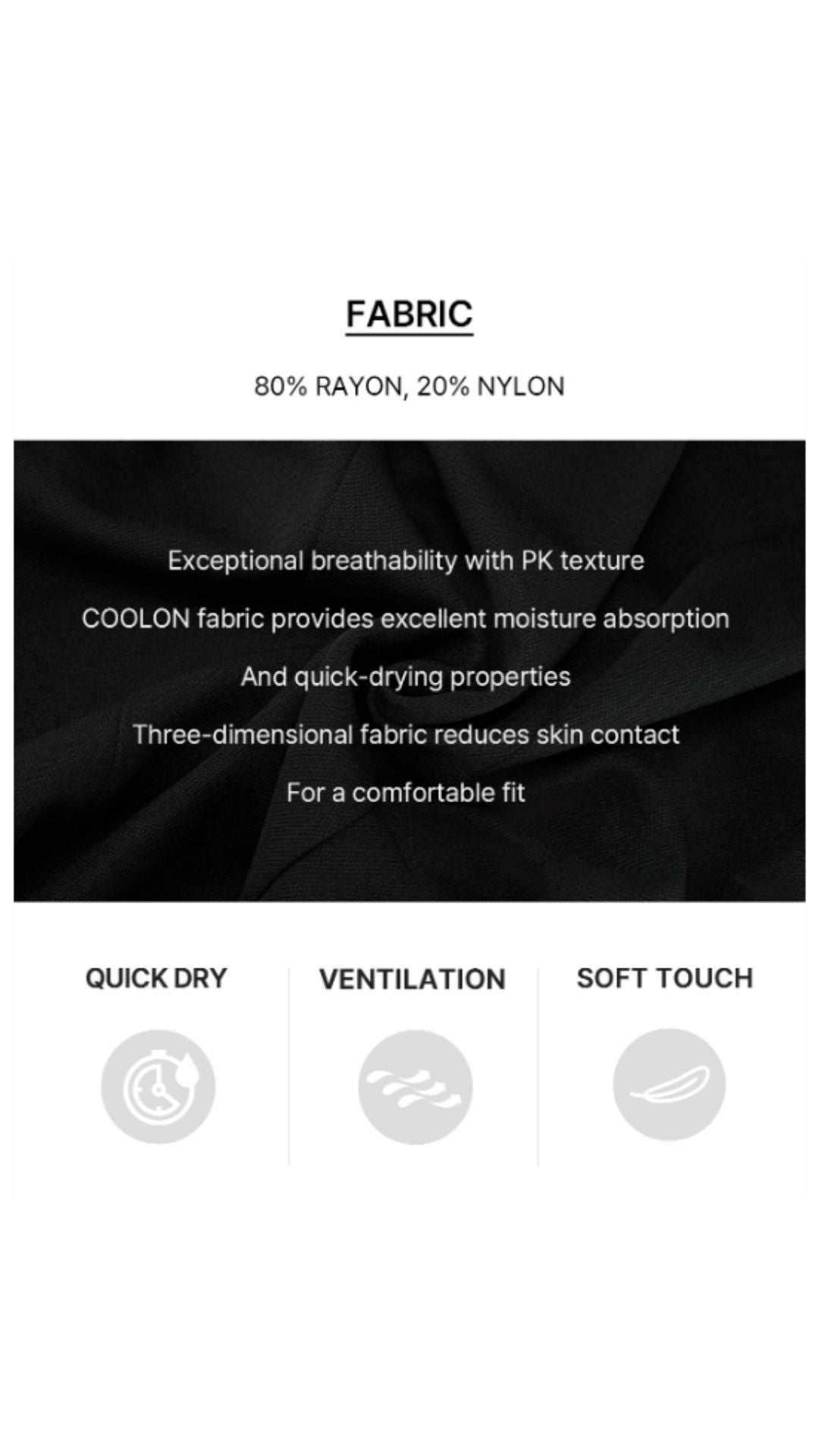 *Made from COOLON material, which offers excellent moisture-wicking and quick-drying properties, ensuring comfort even in hot weather by rapidly evaporating sweat.