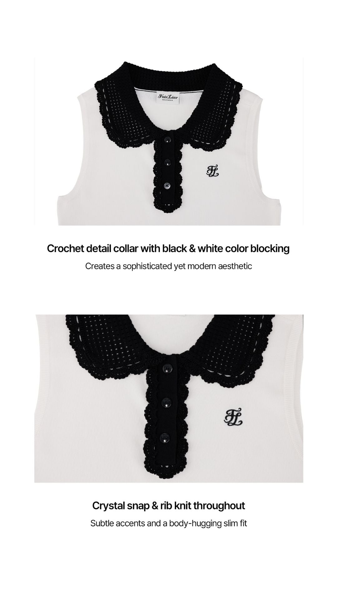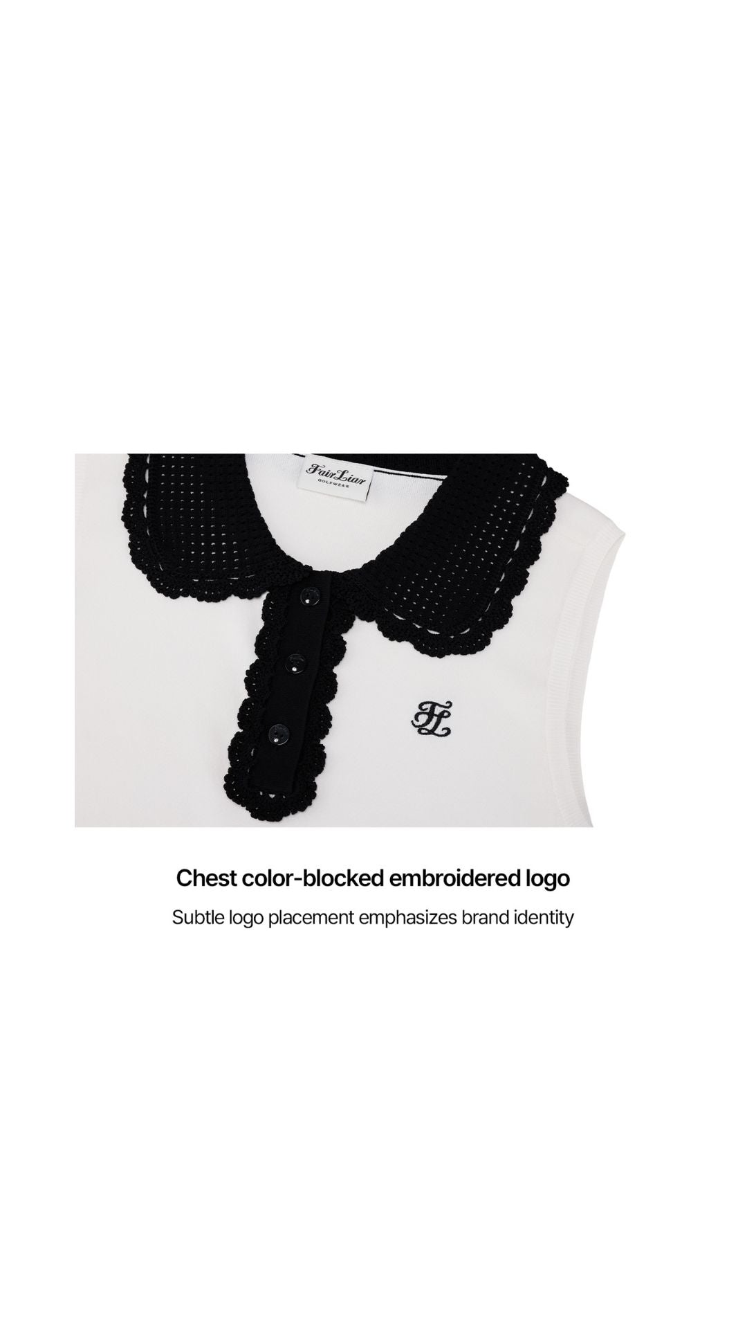 2. The delicate crochet collar detail and black & white color combination create a sophisticated vibe, while the minimalist silhouette harmoniously blends classic elegance with modern sensibility.