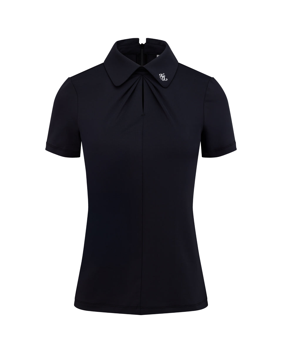 Front shirring short sleeve T Shirt (Black)