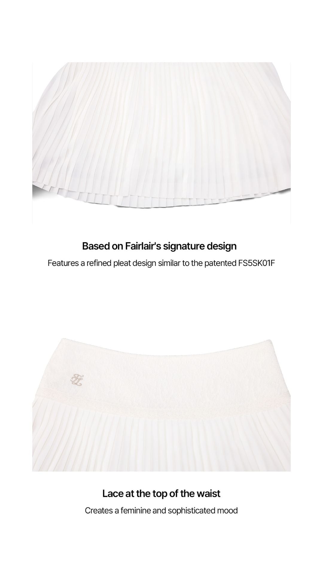 2. Fairlair's signature skirt, the FS5SK01F, features a design similar to the patented design of the " ," with a waistline that sits higher than a low-rise design, allowing for a more stable and comfortable fit.