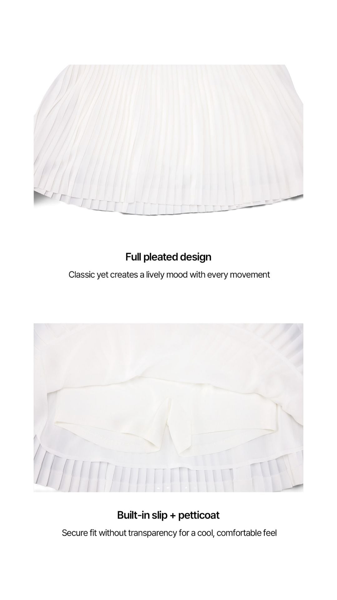 3. The pleat spacing is designed to flatter any body type, creating a slimming effect.