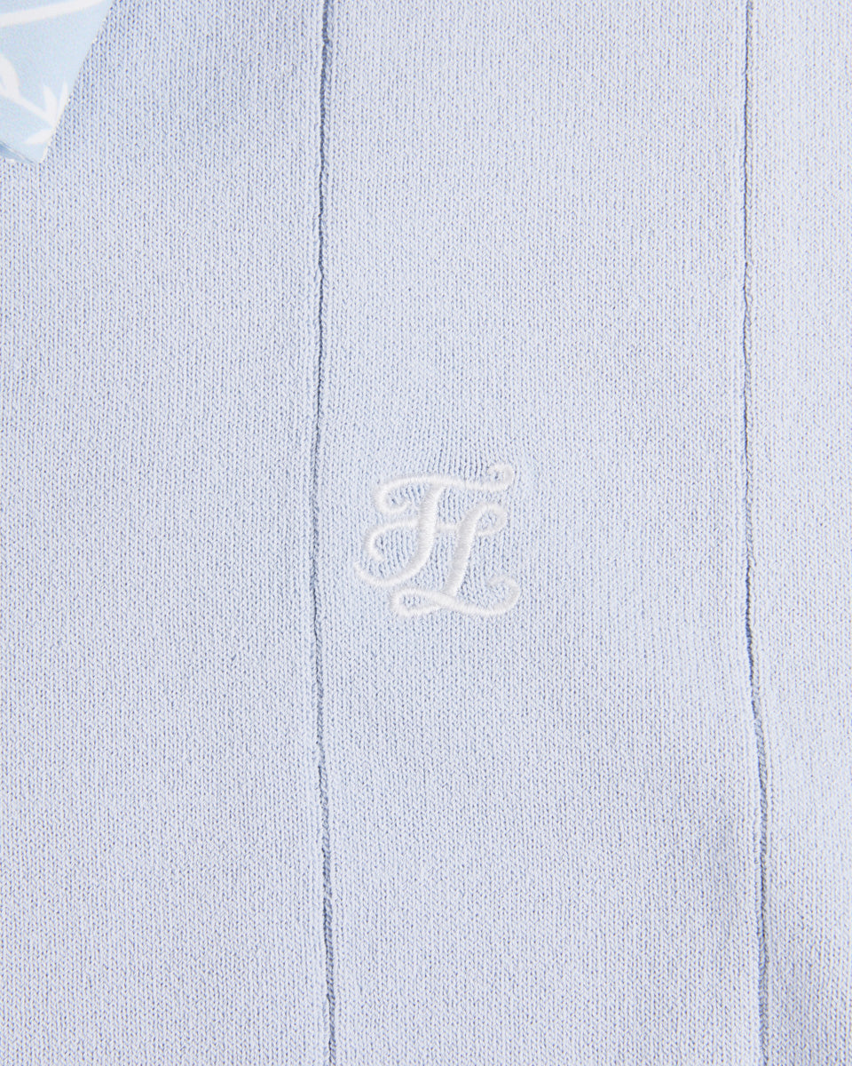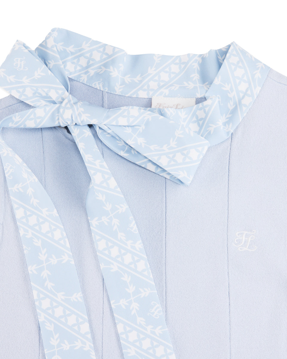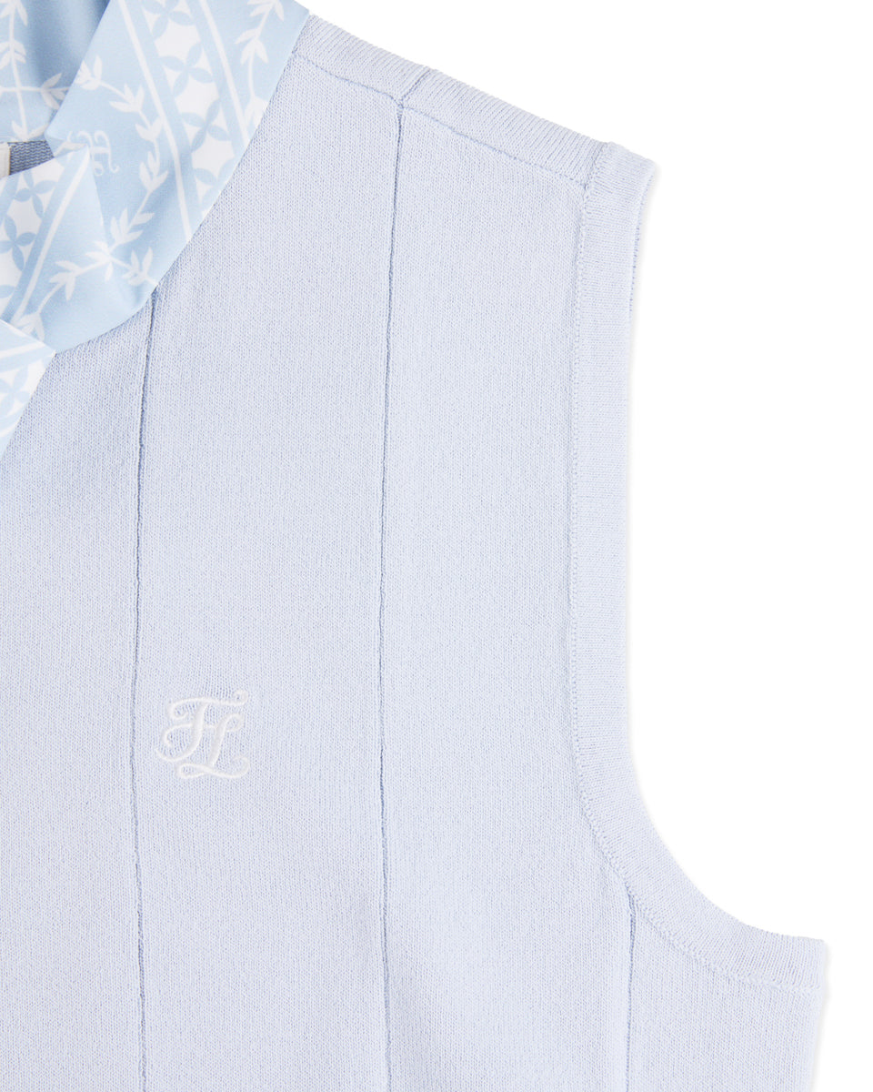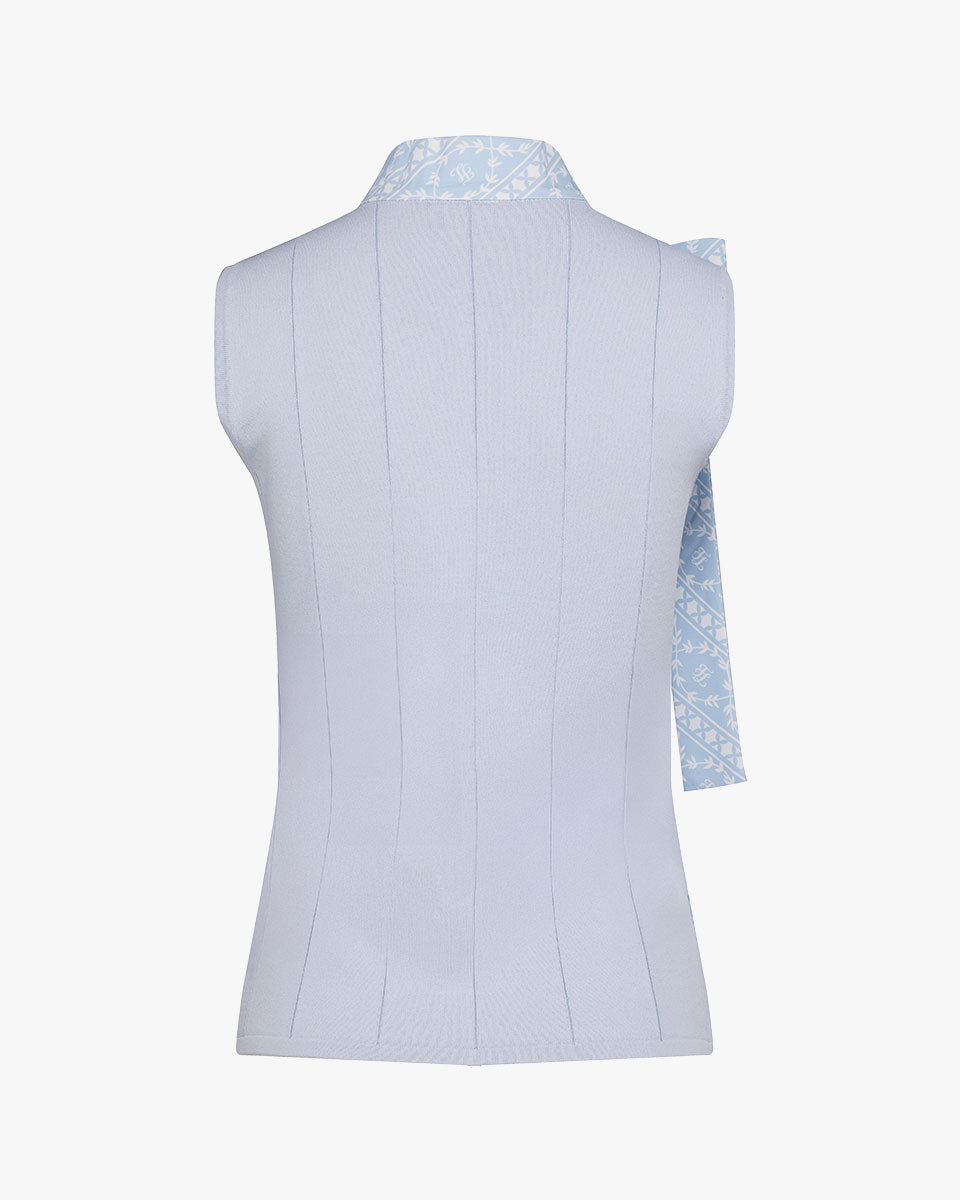 Patterned Neck Ribbon Sleeveless Knit (Blue)