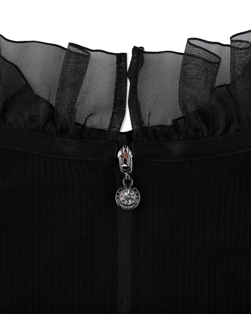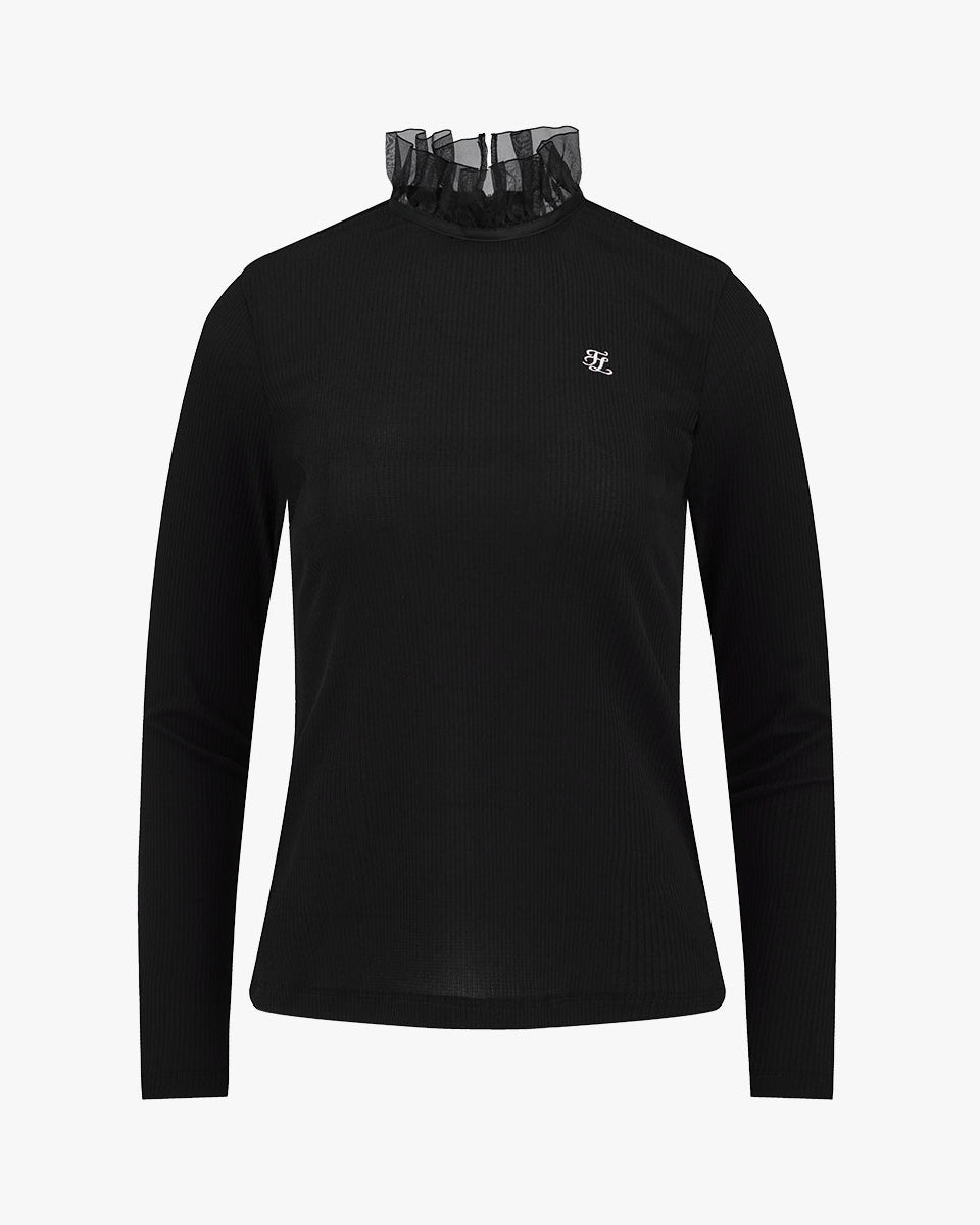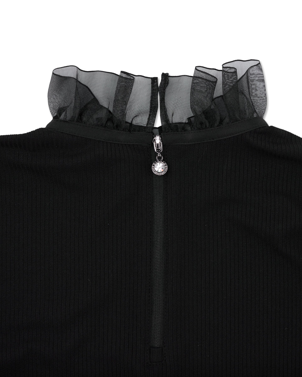 Ruffle High Neck Cooling Inner T Shirt (Black)