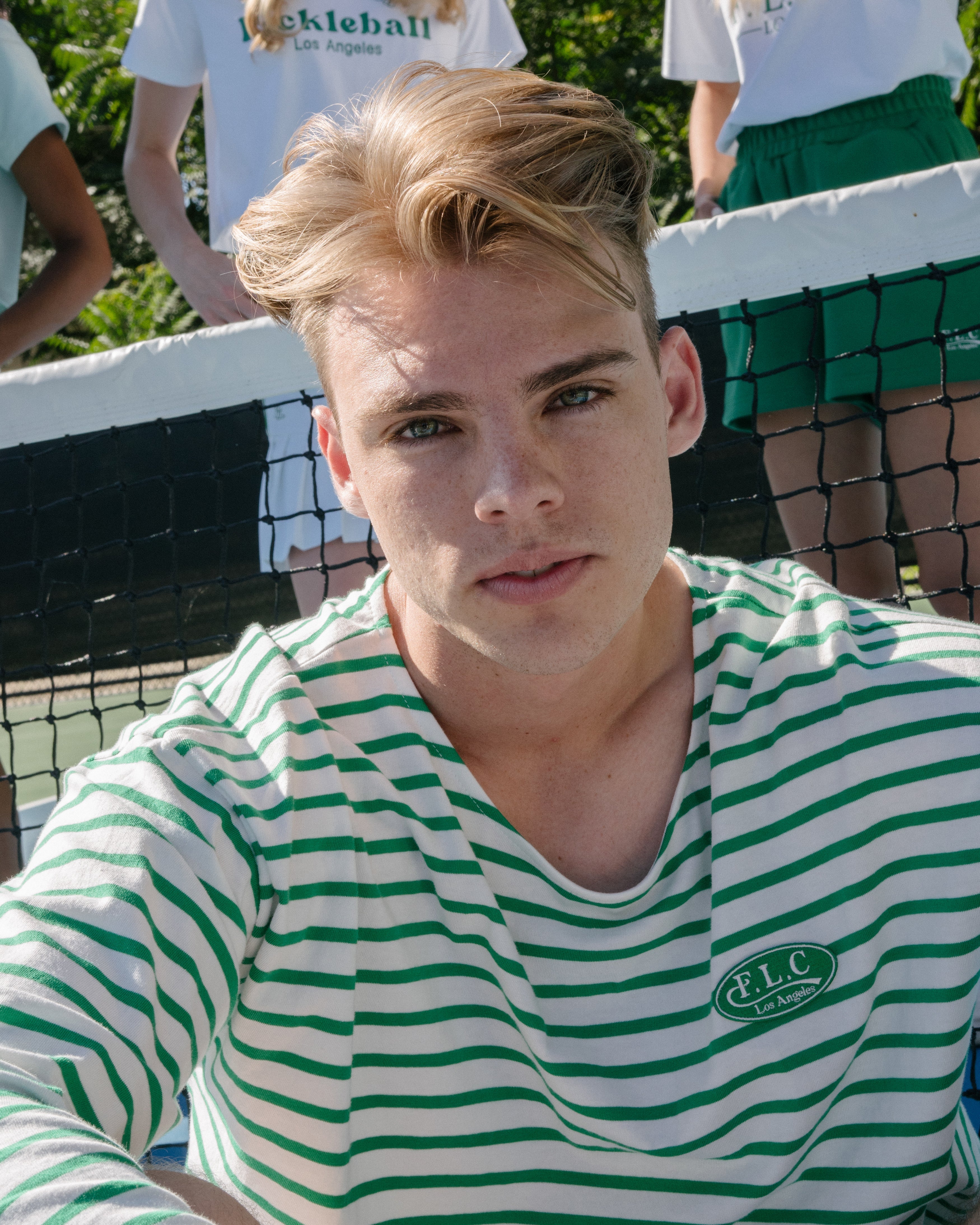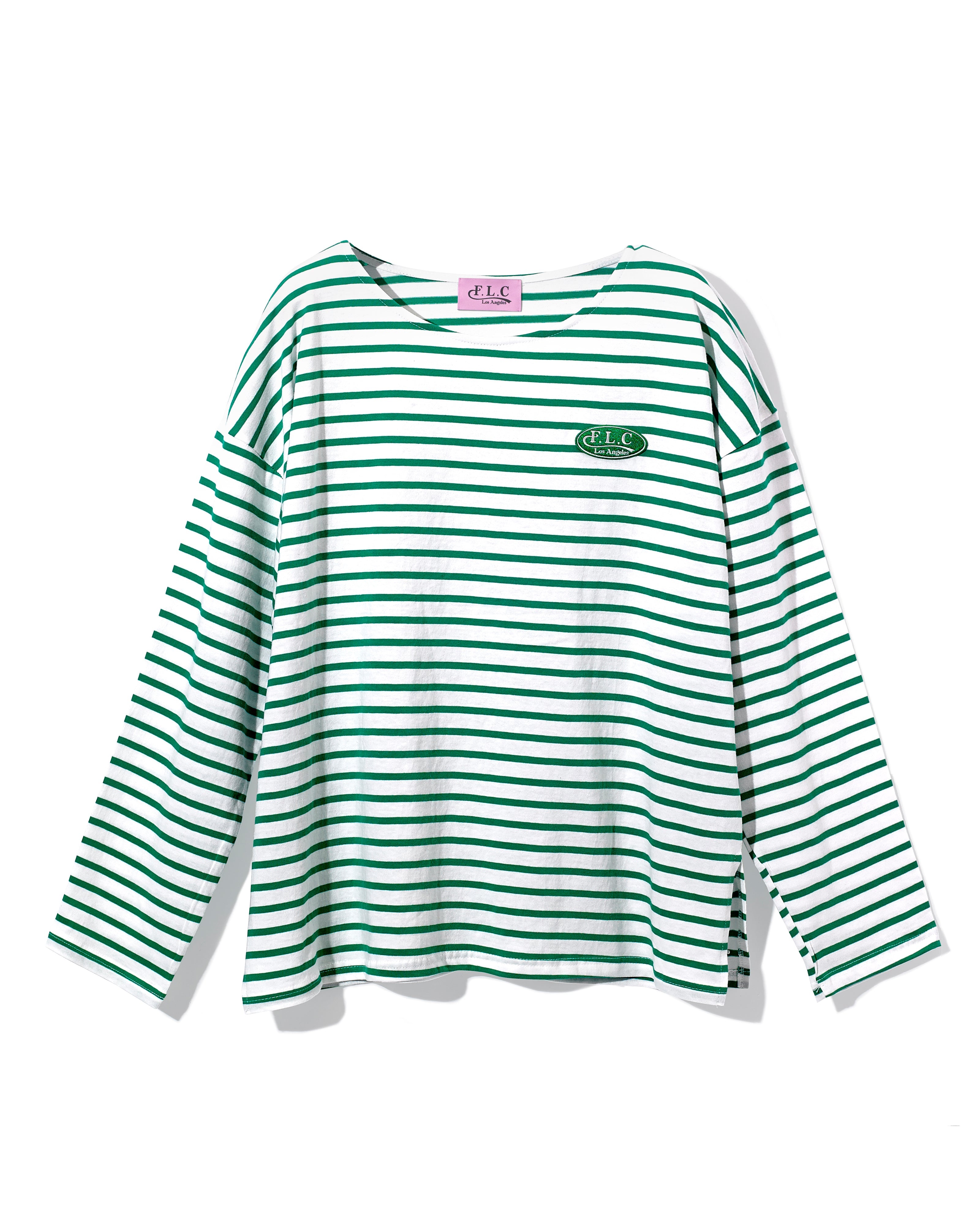 Bold striped t-shirt with the FLC logo embroidered using pen. The oversized fit is an item that can be worn individually and layering for a trendy look.