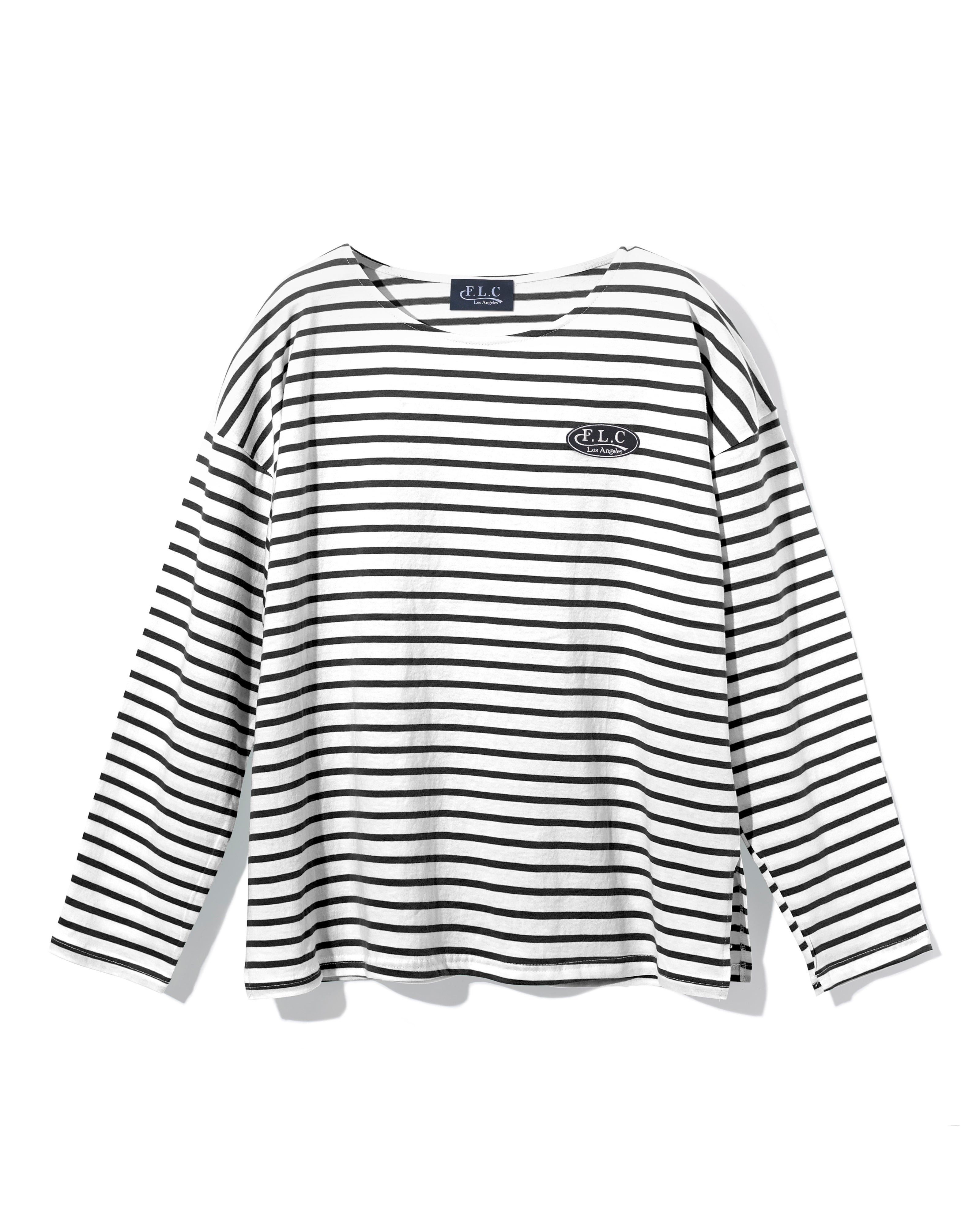 Bold striped t-shirt with the FLC logo embroidered using pen. The oversized fit is an item that can be worn individually and layering for a trendy look.