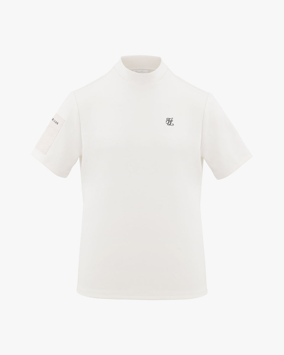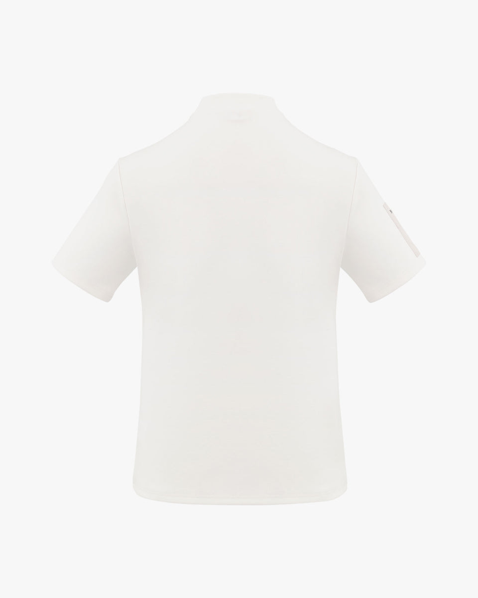 Men's high neck woven patch short sleeve t-shirt - Ivory