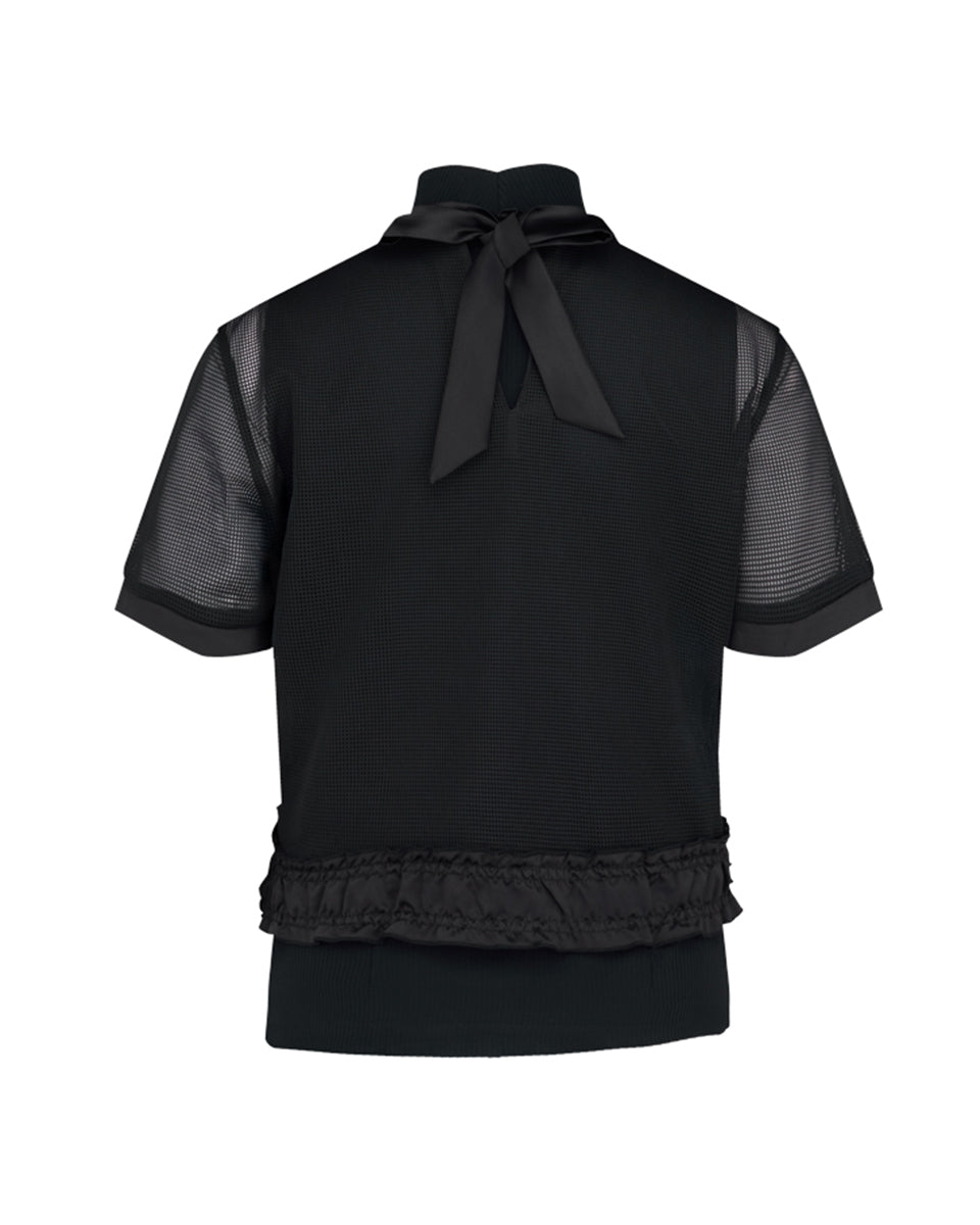Mesh Crop Short Sleeve and Sleeveless Set (Black)