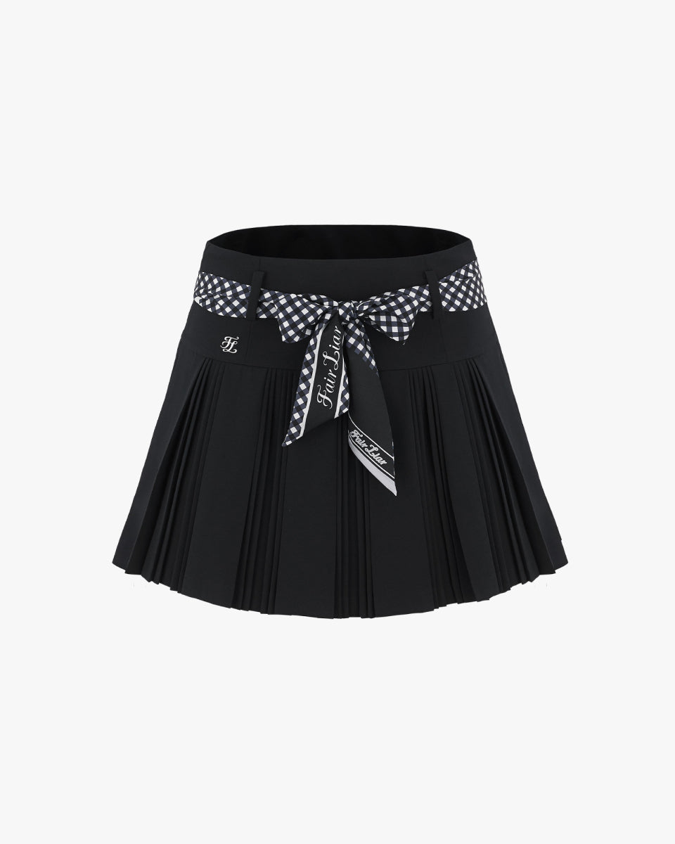 Scarf Set Pleated Skirt (Black)