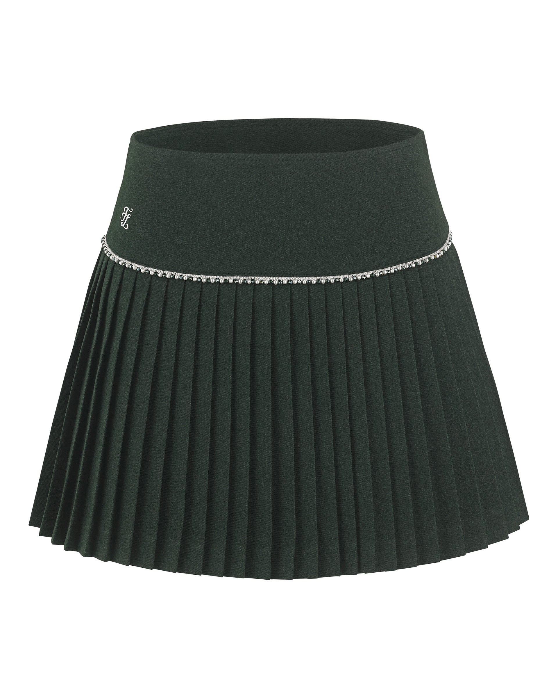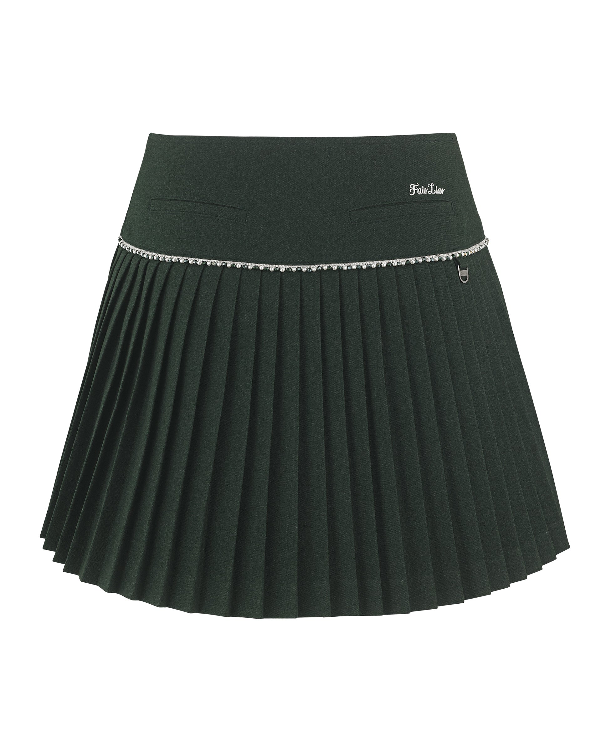 [FL Signature] Pearl & Bead Flare Pleated Skirt (Green)