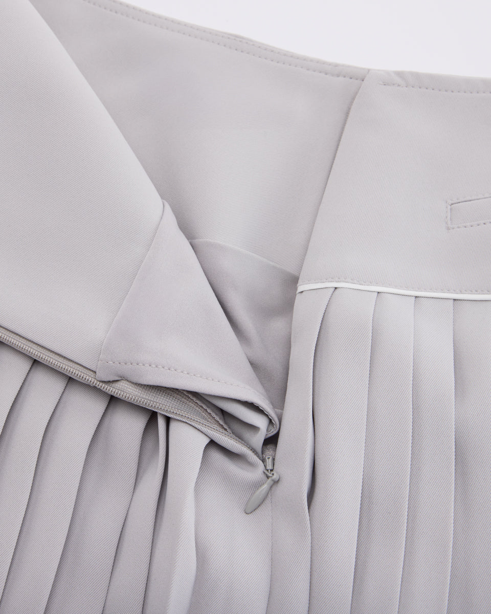 [FL Signature] Fair Liar Silk Twisted Flare Pleated Skirt (Grey)