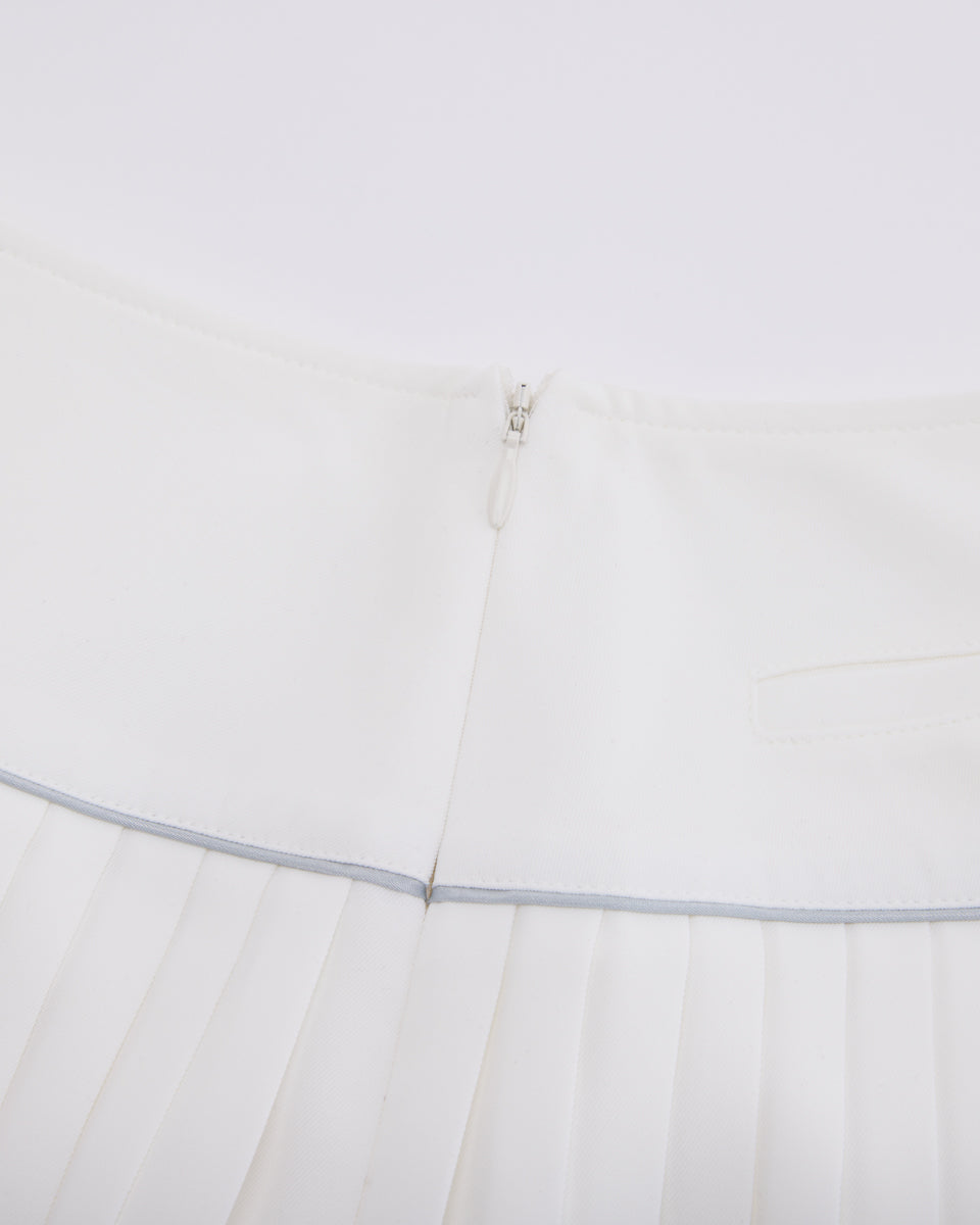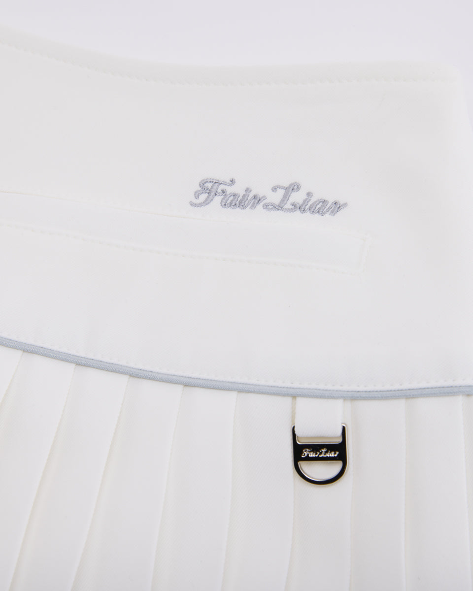 [FL Signature] Fair Liar Silk Twisted Flare Pleated Skirt (White)