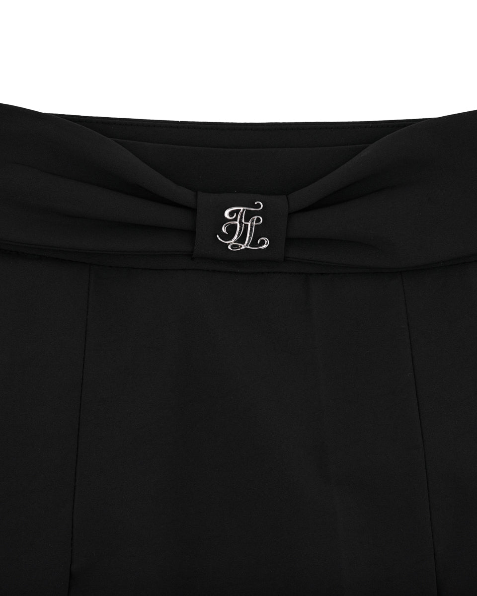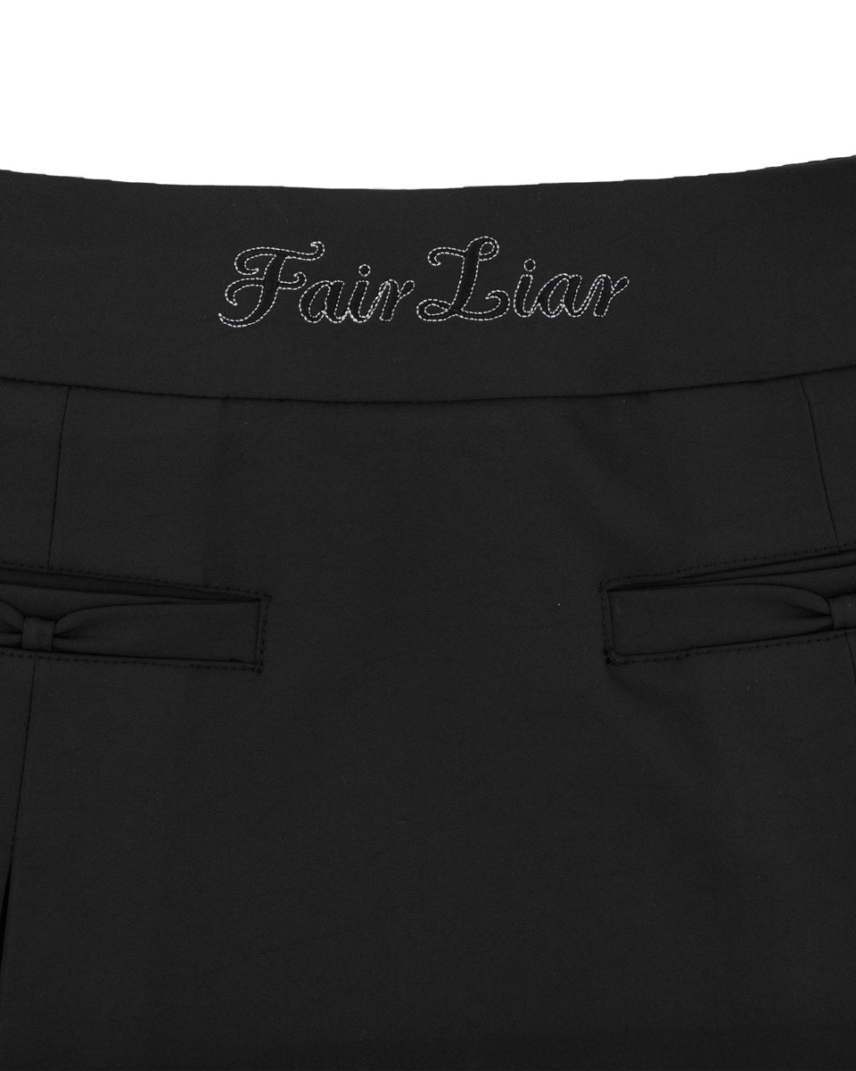 Front Ribbon Belt Wide Pleated Skirt (Black)