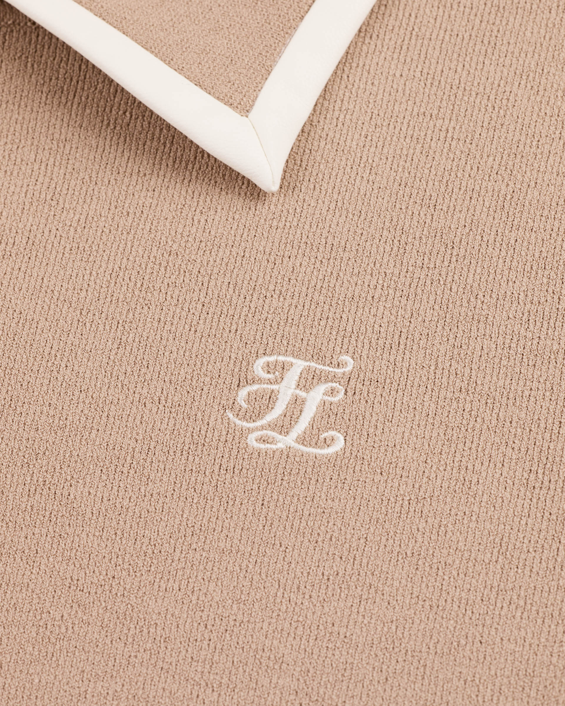 Leather Color Combination Collar Knit (Cocoa)