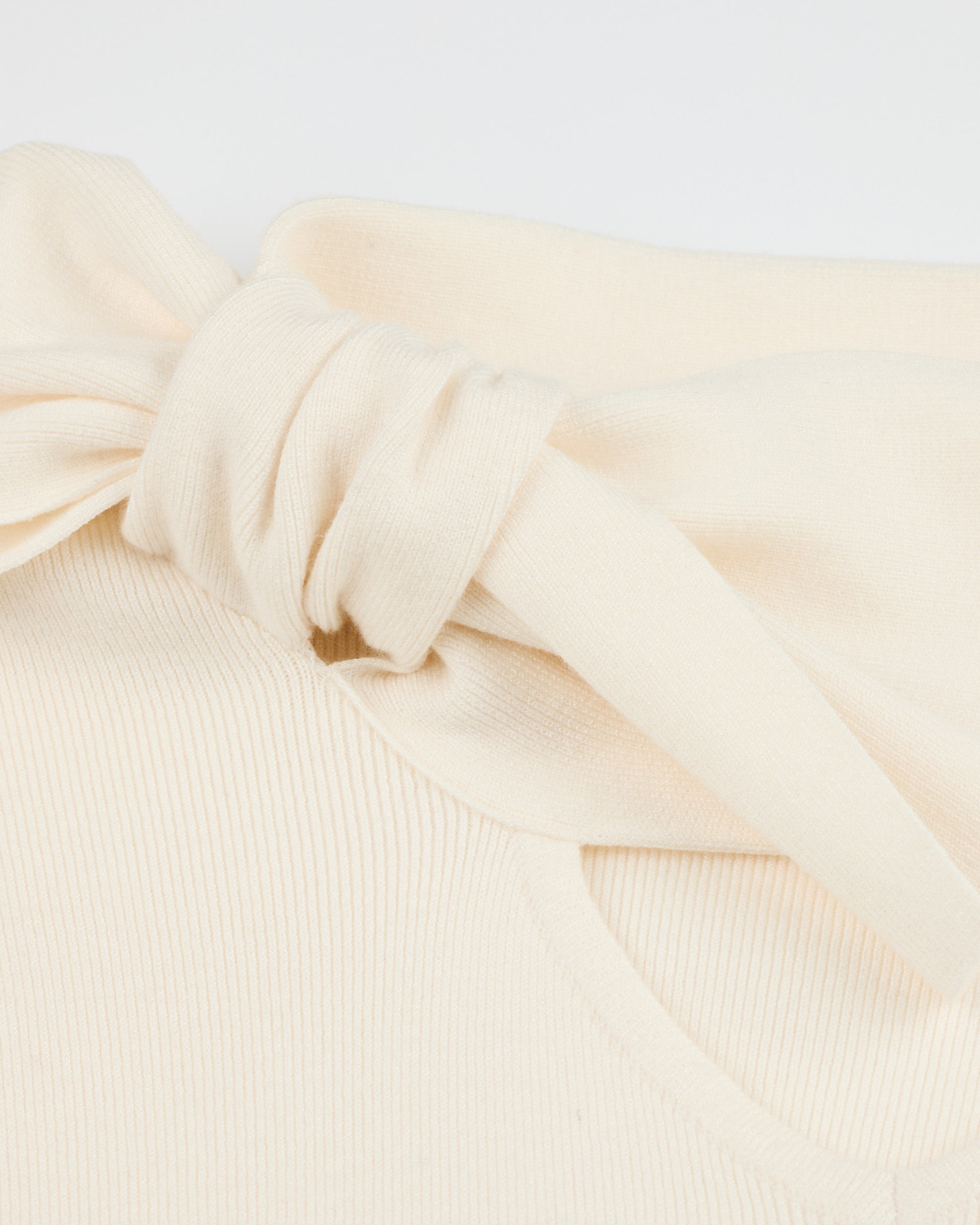 - Ribbon on the left side of the neck can be worn two-way (you can create a ribbon shape by inserting a string into the inner ring, or loosen it and let it hang long). * Front slit V-neck * Number of 1 degree symbol logo embroidery
