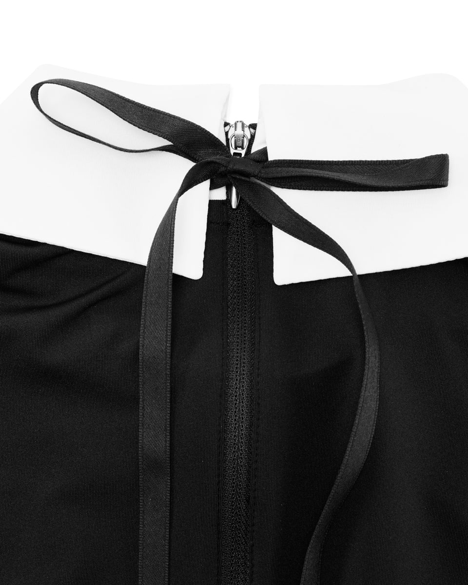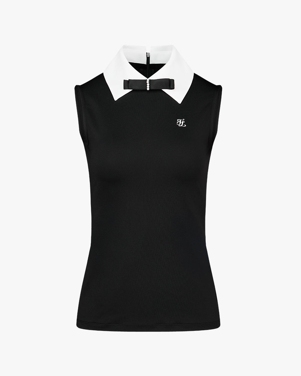Big Collar Ribbon Sleeveless T Shirt (Black)