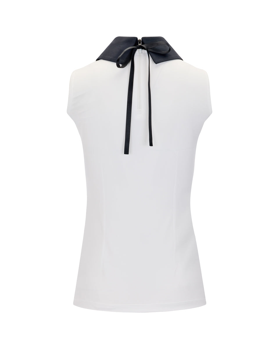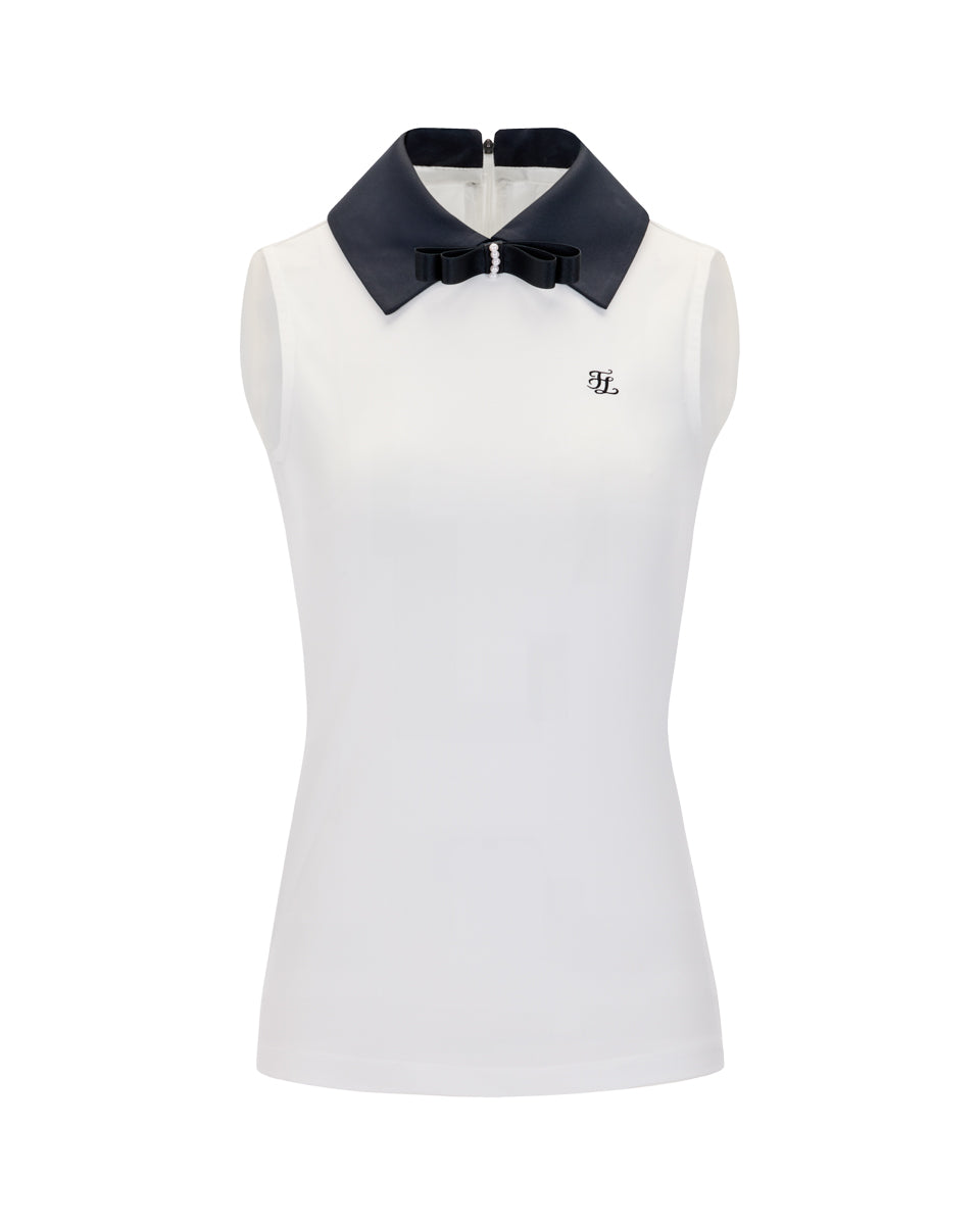 Big Collar Ribbon Sleeveless T Shirt (White)