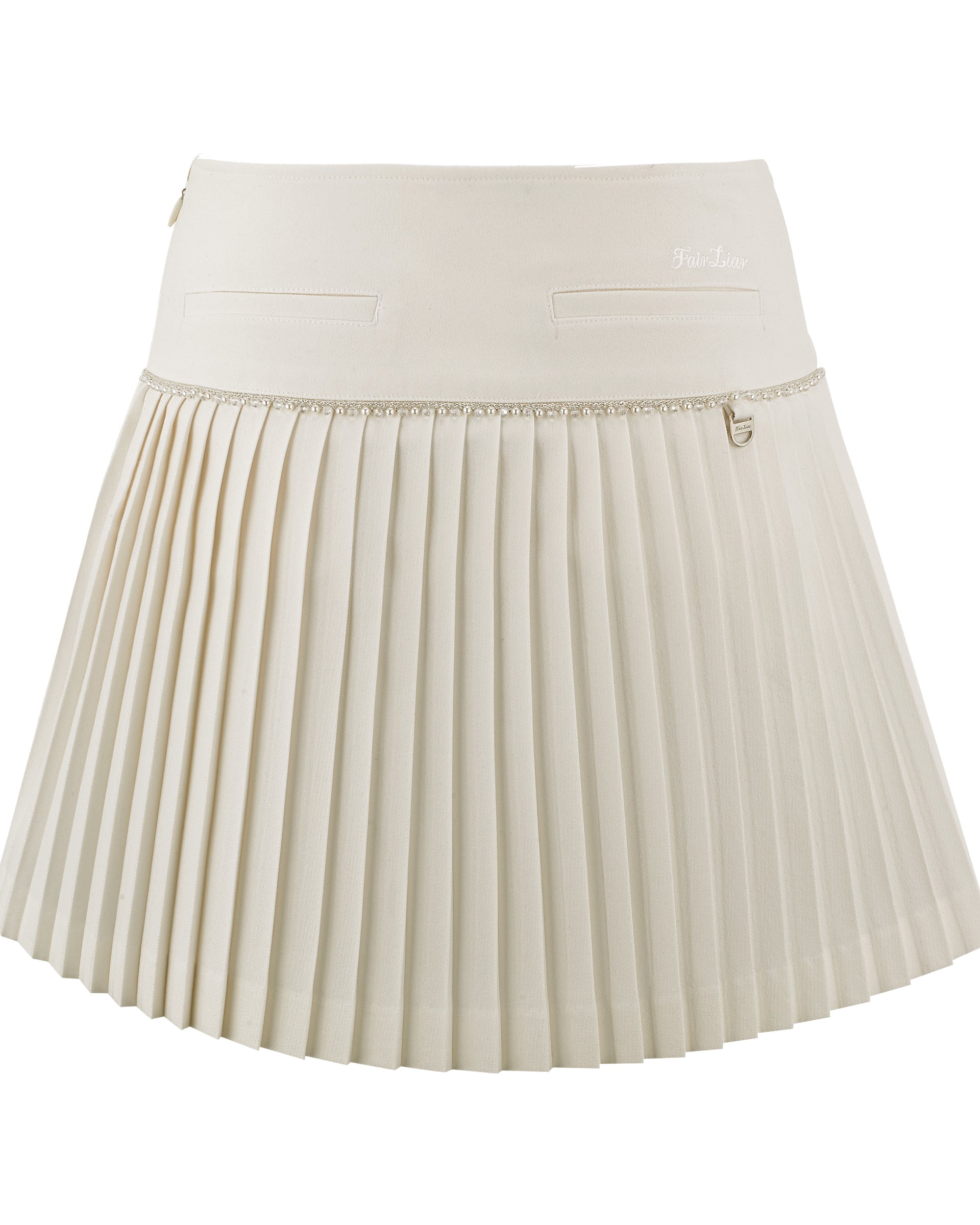 [FL Signature] Pearl & Bead Flare Pleated Skirt (Beige)