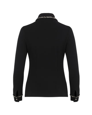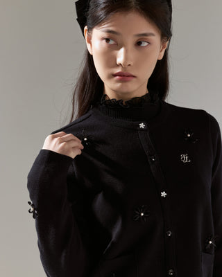Fair Liar Double Frill High Neck Rib Knit (Black)