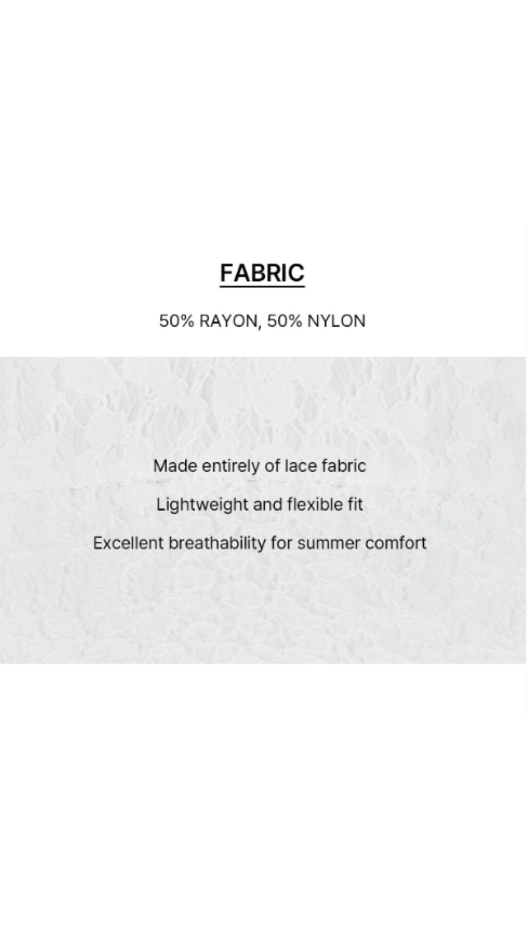 *Maximizes femininity with all-over lace fabric
