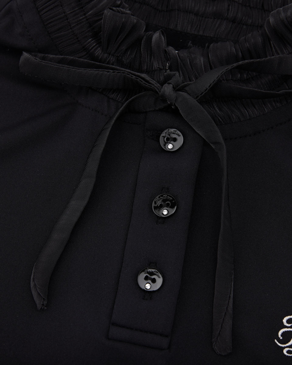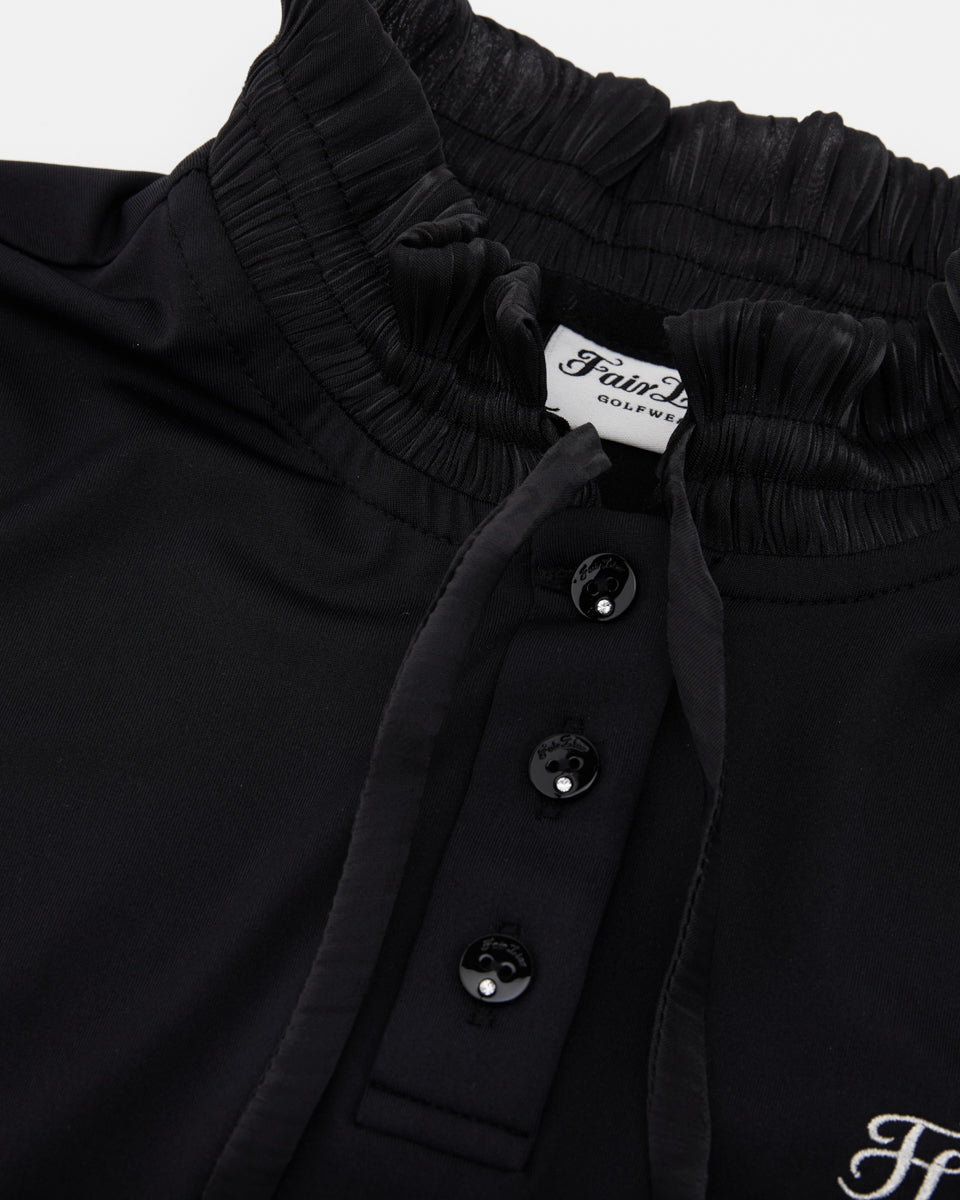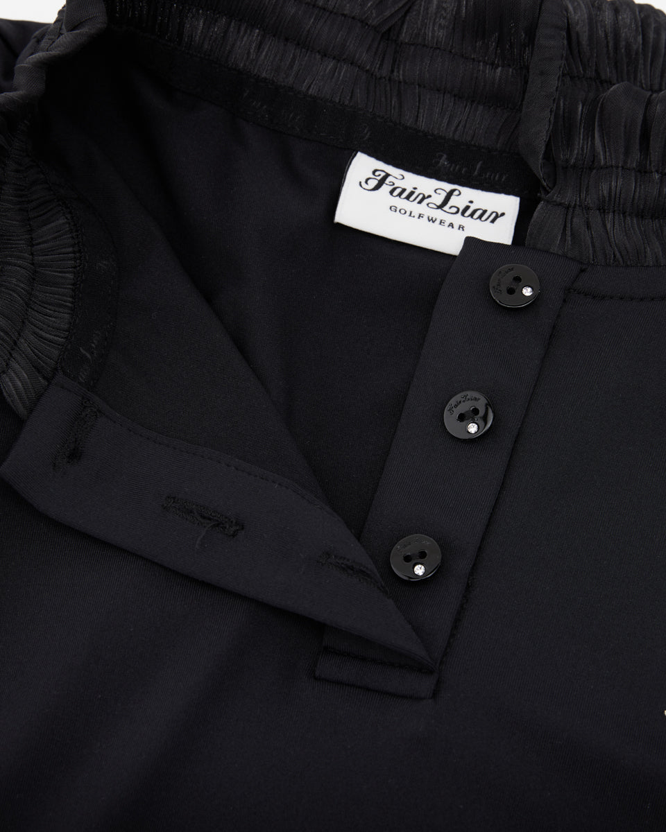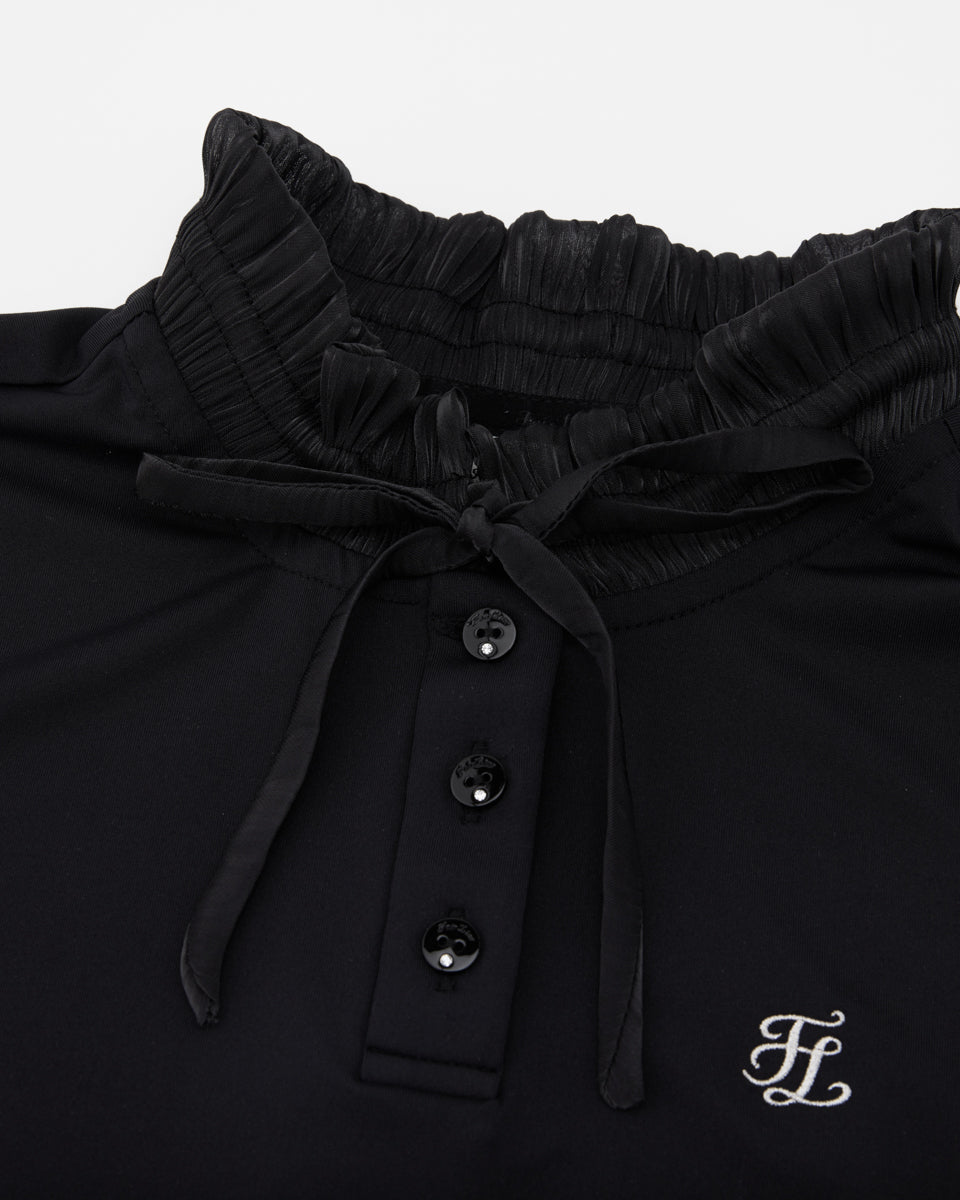 Shirring Ribbon High Neck T Shirt (Black)