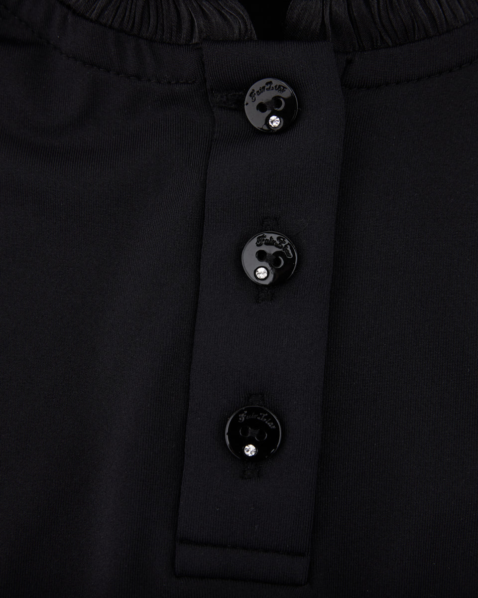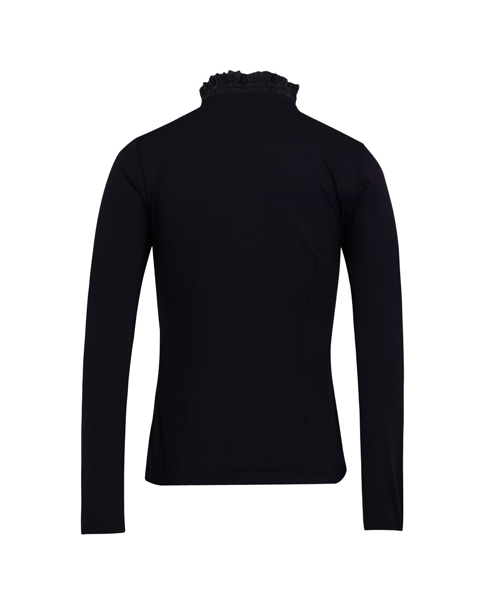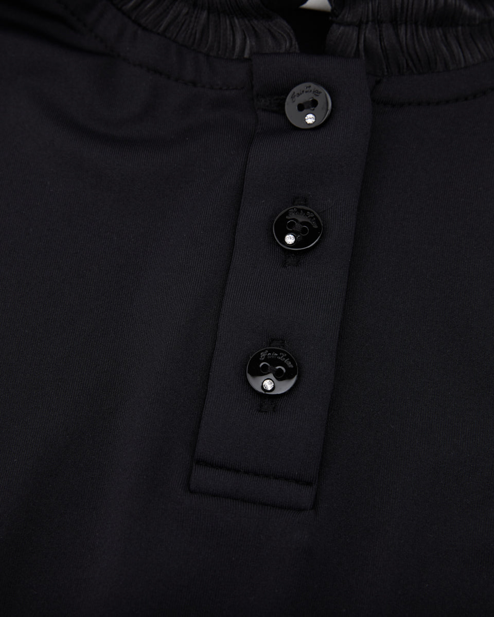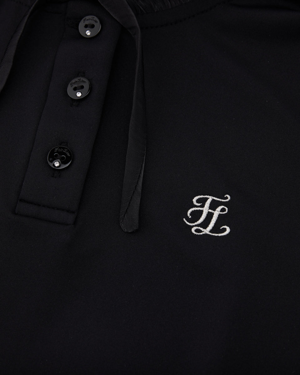 Shirring Ribbon High Neck T Shirt (Black)