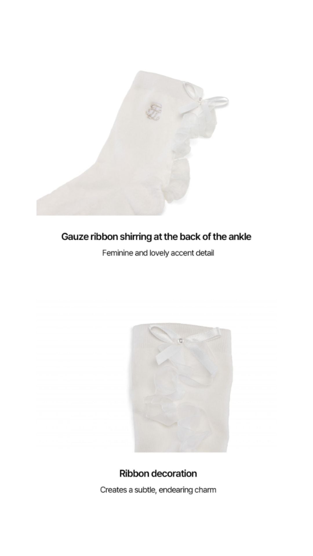 * Shirred organza ribbon detail and ribbon trim at the back of the ankle